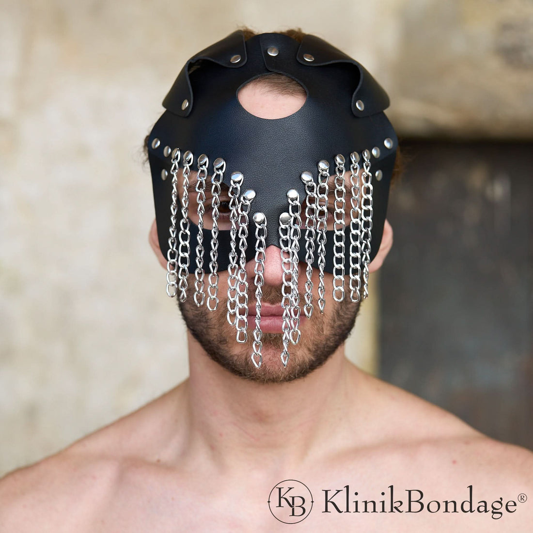 This premium leather BDSM mask features chains draped over the eyes for a sexy, mysterious...