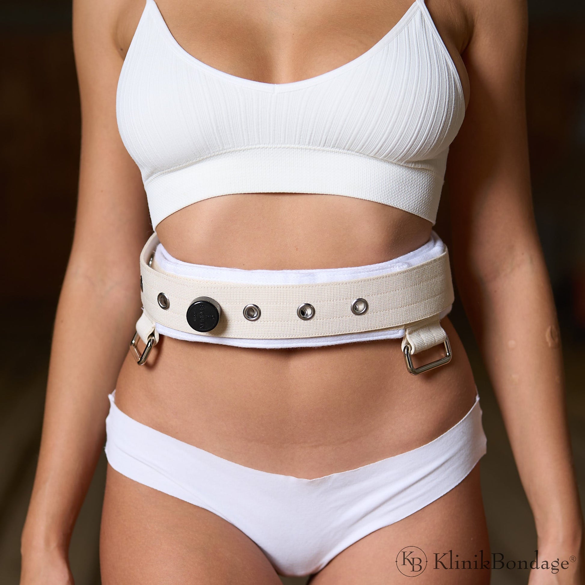 Our BDSM belt in white reliably restrains naughty hands and unleashes desire. Available as a variant in our BDSM shop: magnetic locks for stable and quick fastening.