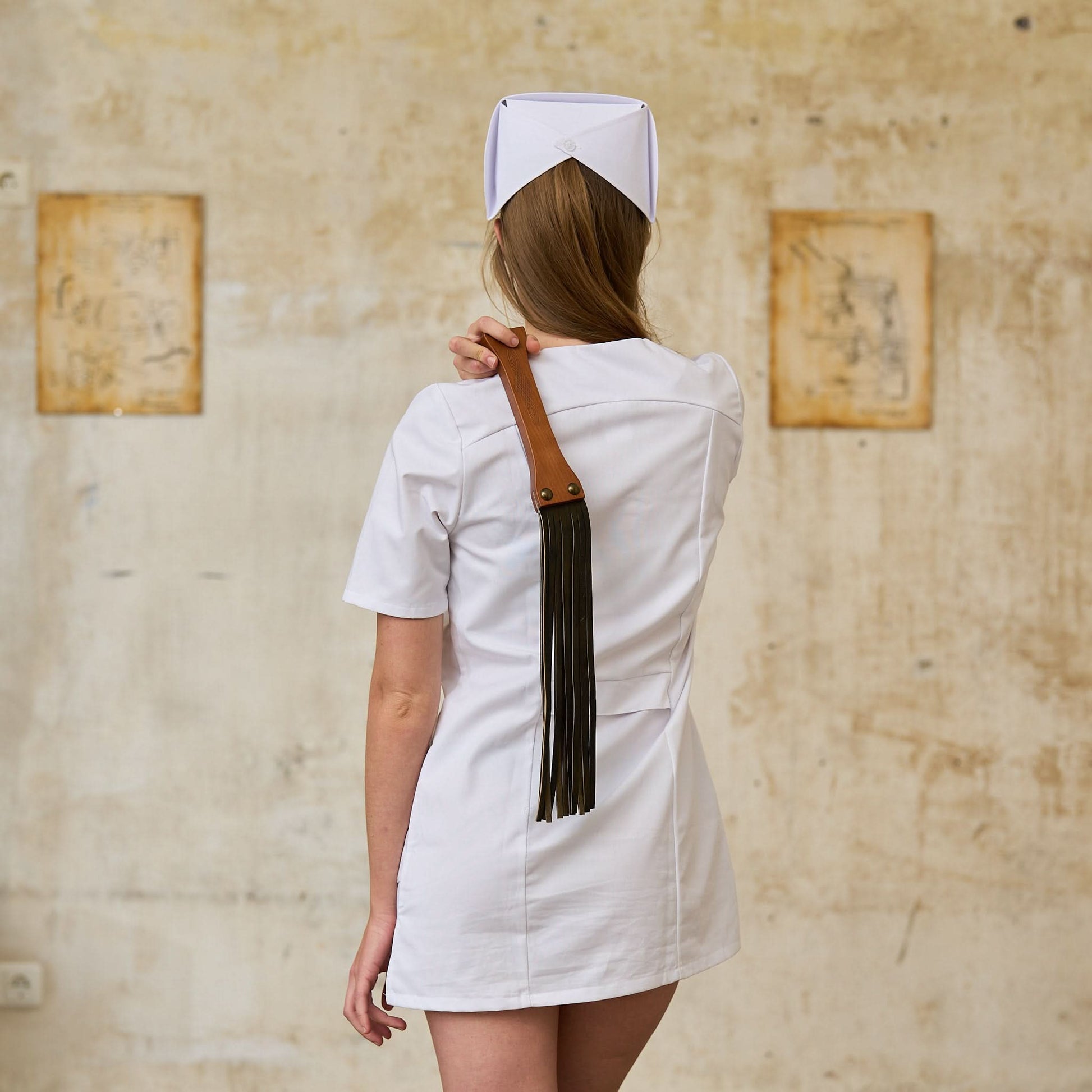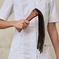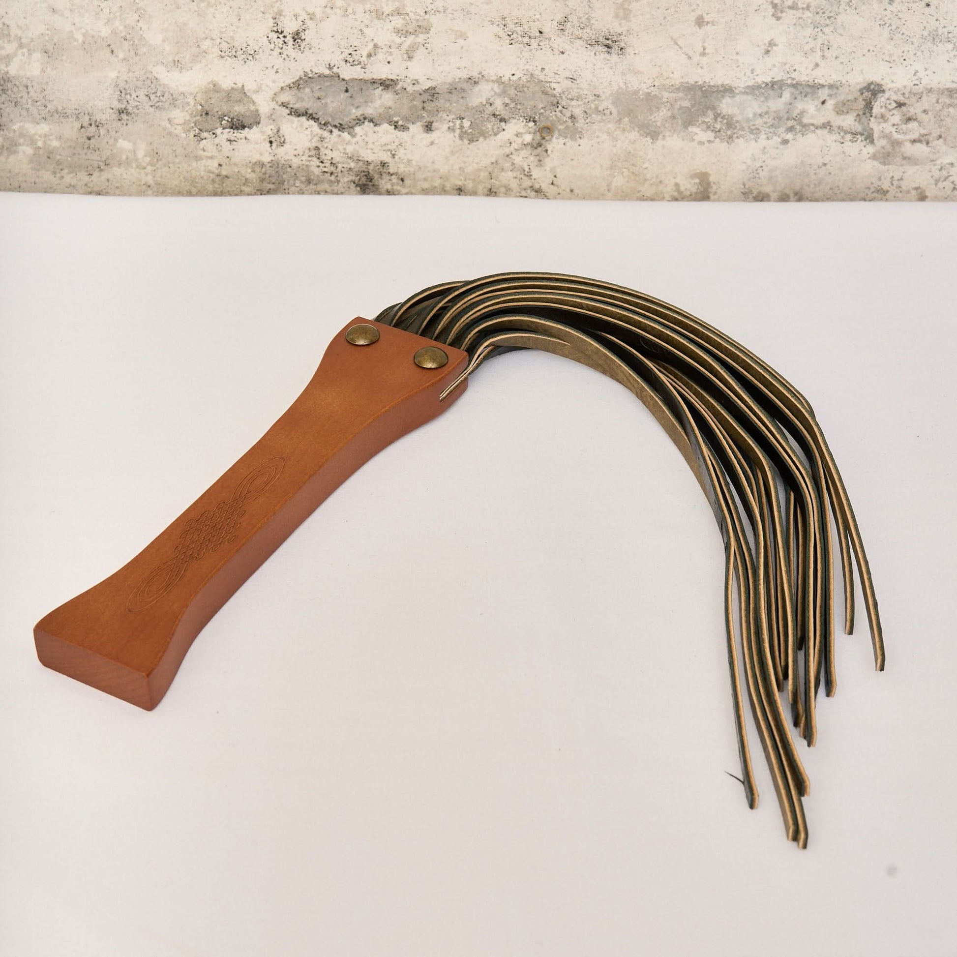 Chastity meets nostalgic charm with our vintage BDSM flogger. Handcrafted from high-quality leather and featuring an intricately designed wooden handle, this stylish and effective accessory is perfect for all forms of indulgent play.