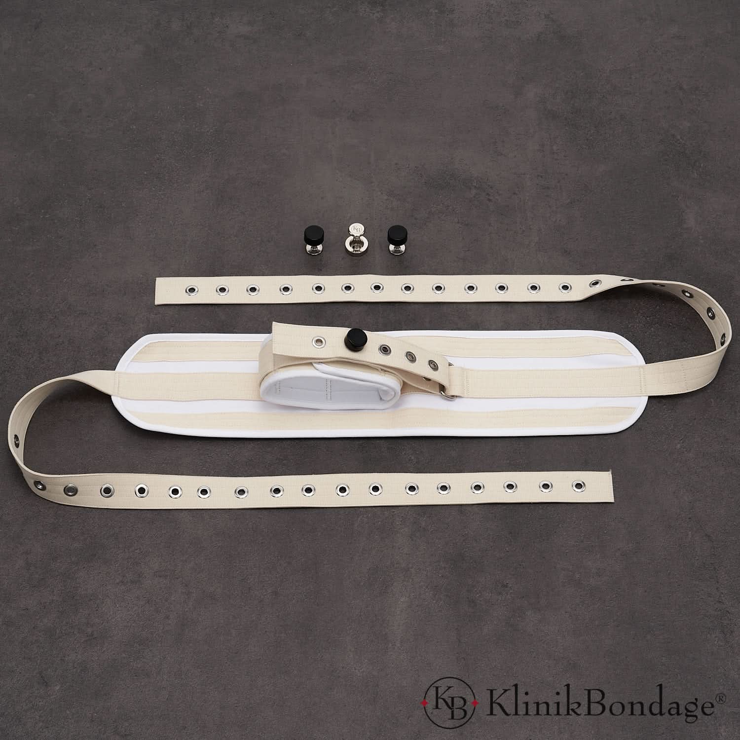 • Our bondage products fit all types of beds, whether attached to bed frames, slatted frames, or simply secured under the mattress. Our restraints are versatile and flexible. Depending on the bed size, additional [components] may be required. Technical drawings and size information are available in the product images.