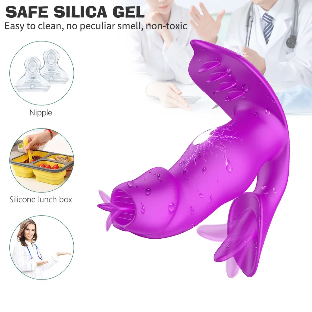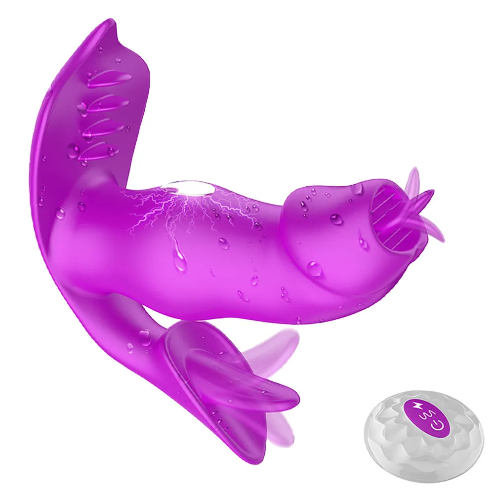 Massage 4 in 1 Electric Shock G-spot Vagina Stimulator Adult Products Oral Sex Tongue Licking Dildo Vibrator Erotic Sex Toys for Couple