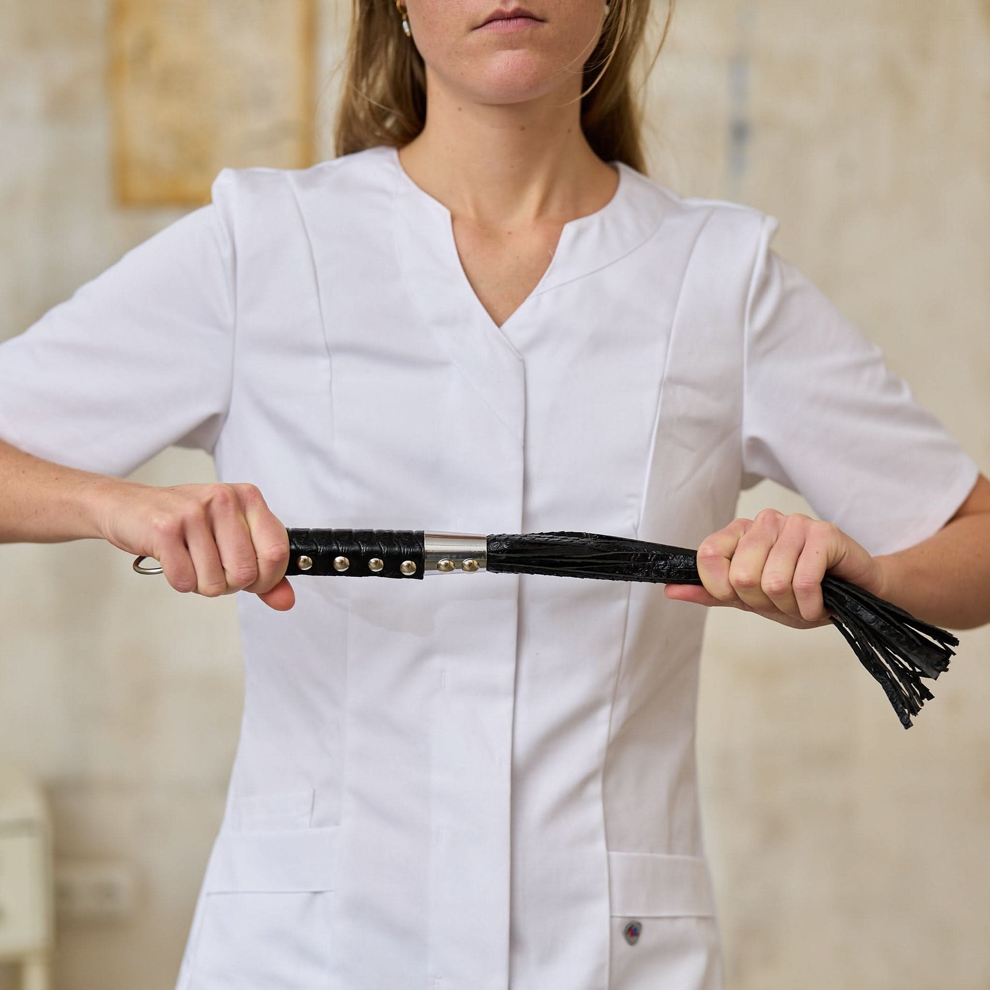 A classic among punishment tools – our black latex flogger whip keeps your partner under control and gets you going. This BDSM essential is a must-have in every dominatrix's collection.