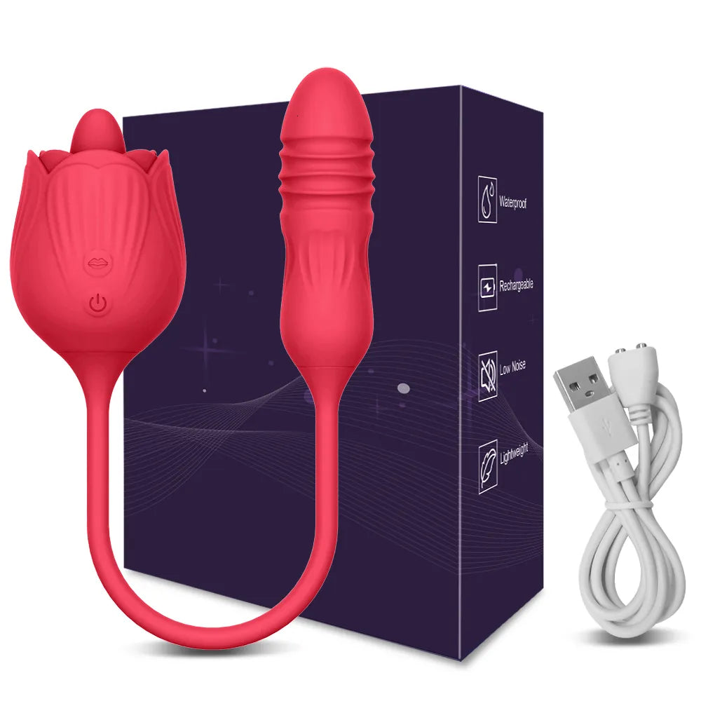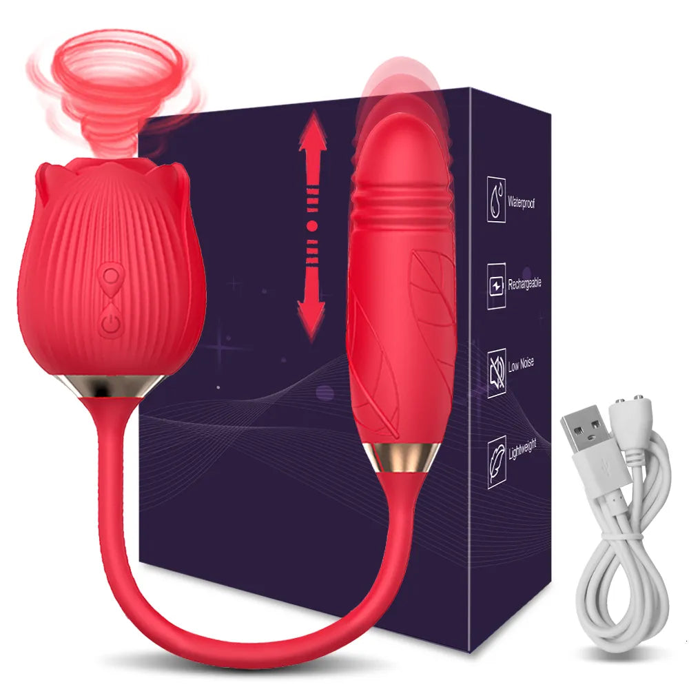 Vibrators Rose Toy Dildo Thrusting Vibrator for Women Egg Clitoris Sucker Stimulator Tongue Licking Adults Goods Sucking Sex Toys Female 230803