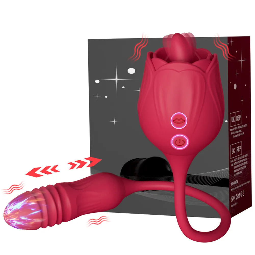 The rose vibrator with tongue & egg can stimulate the nipples, clitoral and vagina or any sensitive points, egg vibrator can stimulate your vagina and anus. You can switch to tongue licking to tease the clitoris and nipples at will. The instant orgasm under dual stimulation will definitely make you scream!