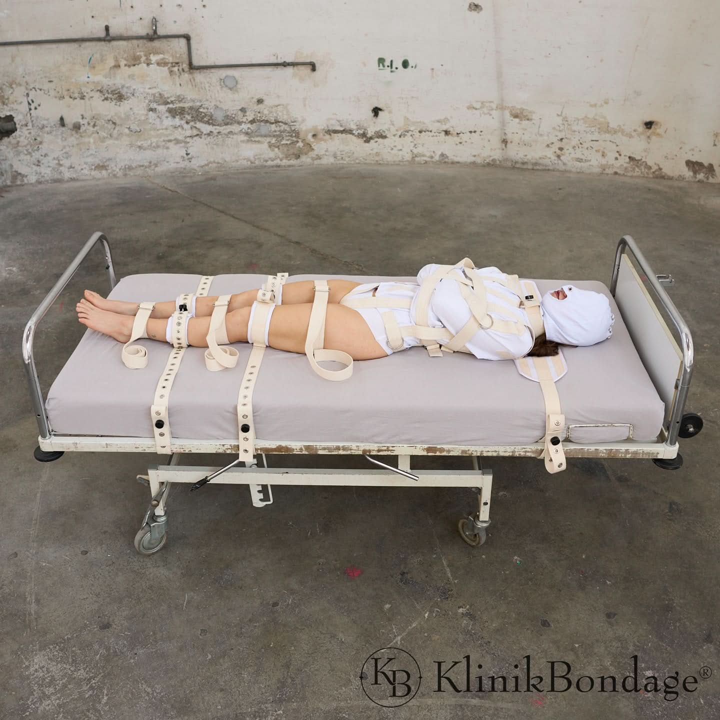 An additional strap is included for the straitjacket, which runs over the arms and secures them in specially designed loops. This strap prevents the arms from being lifted and is shown in the product images.