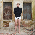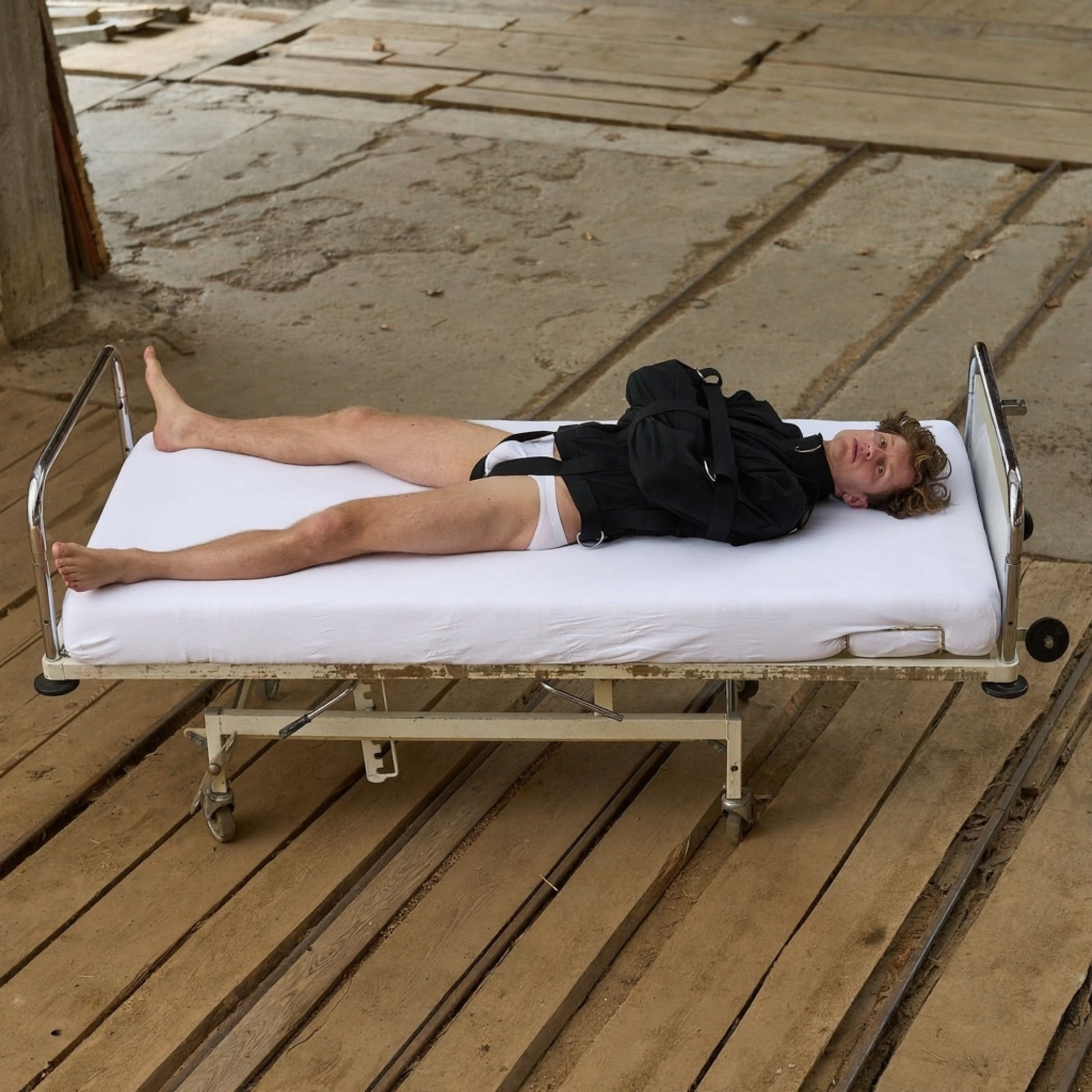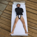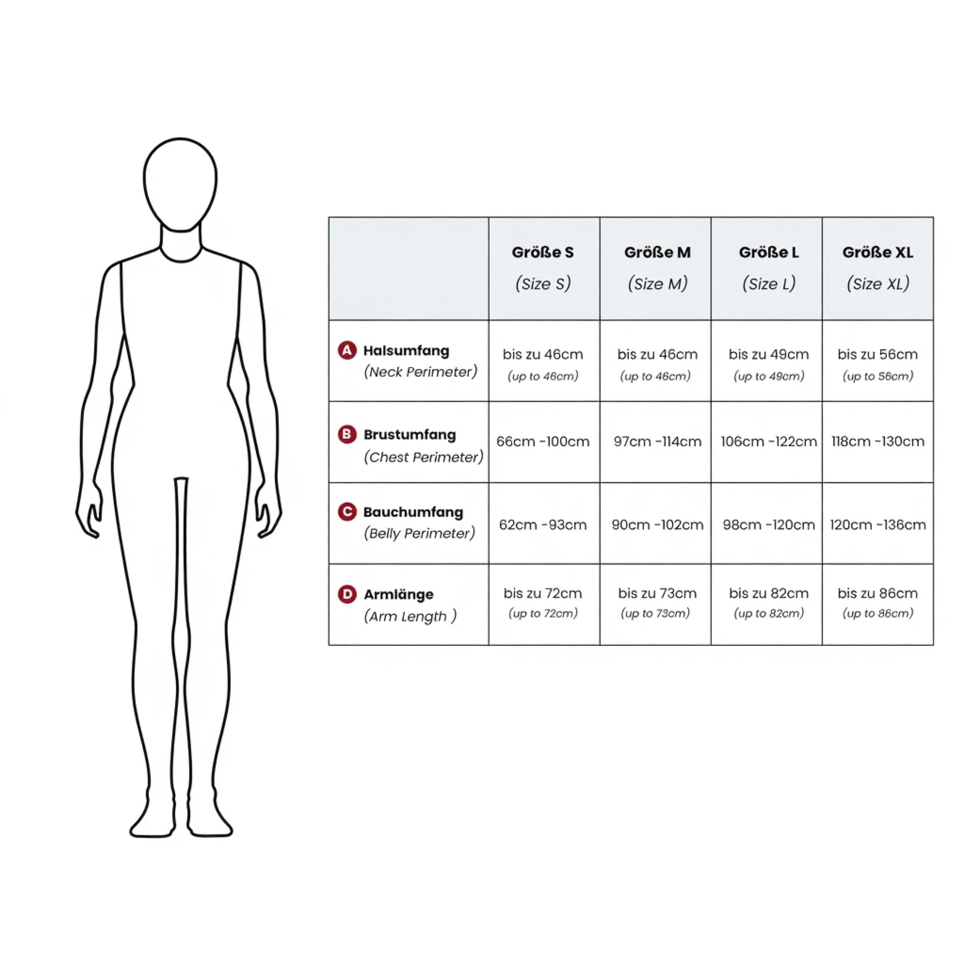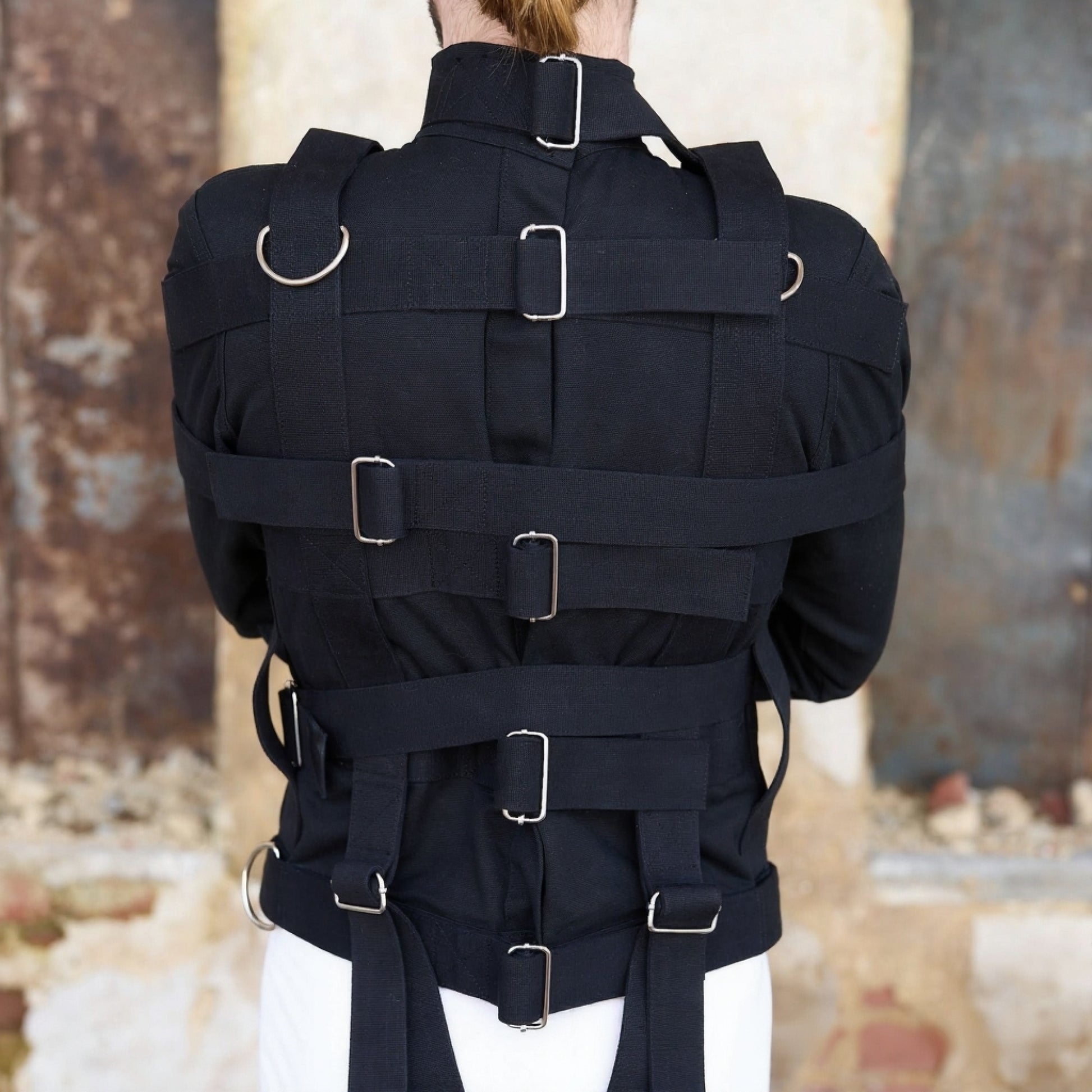 Our black straitjacket impresses with its outstanding craftsmanship and premium quality. Available in four sizes, it combines comfort with exceptional durability. The extremely sturdy loops and straps hold firm even under intense stress. Thanks to the robust materials and precise construction, escape is impossible, making the jacket suitable even for demanding suspension bondage. It offers maximum control and is ideal for intense bondage sessions.